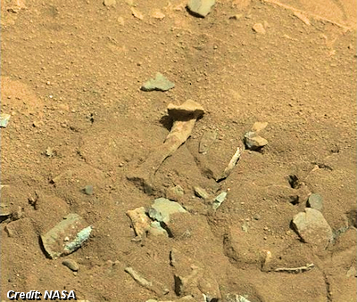 Una conmoción fue causada recientemente por una imagen que mostraba un objeto similar a un hueso de fémur entre muchos pedazos de roca. NASA ha puesto punto final a todas las alegaciones formuladas por muchos bloggers de todo el mundo de que existía vida extraterrestre en Marte.