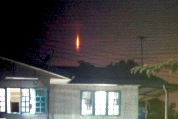 Meteorólogos, policías y bomberos no pudieron explicar las luces en forma de pilares que se movían a través del cielo en la zona de Putatan, alrededor de las 21:30, durante varios minutos.
