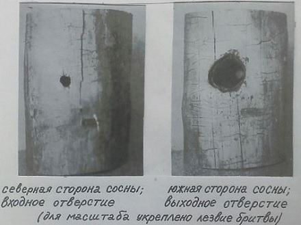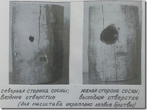 Arriba. Además, había agujeros en los árboles. Para este testigo, teniendo en cuenta el ángulo de la trayectoria y su velocidad, no hay duda de que no era un meteorito, sino algo muy diferente. Troncos de árboles enormes aparecían quemados por algún tipo de láser potente que dejó marcas horizontales precisas. Los meteoritos no dejan estas huellas.