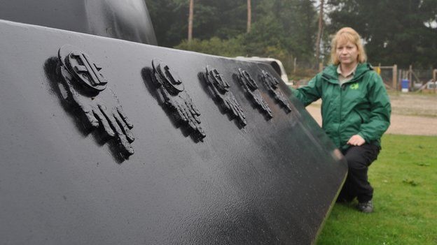 Olivia English diseñó la escultura ovni y dijo que estaba basada en uno de los bocetos de los militares y otras descripciones de avistamientos en el bosque.