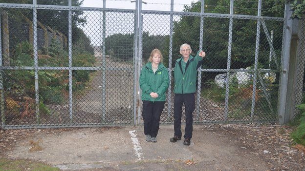 Olivia English y Nigel Turner visitaron RAF Woodbridge»™s East Gate donde se hicieron los avistamientos reportados