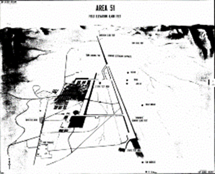 Mapa del sitio del Área 51, como se muestra en los documentos desclasificados de la CIA publicados a través de su programa CREST (Crédito: CIA.gov/Wikimedia Commons).