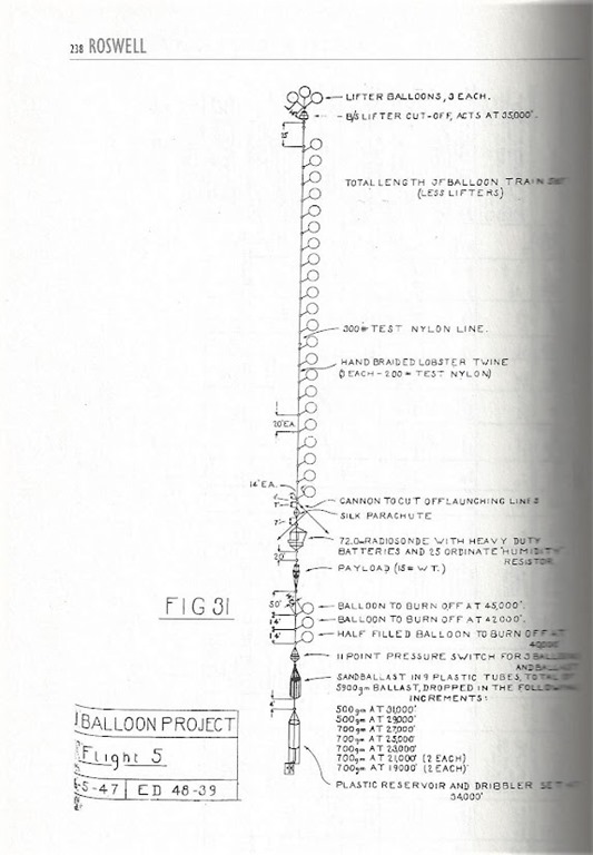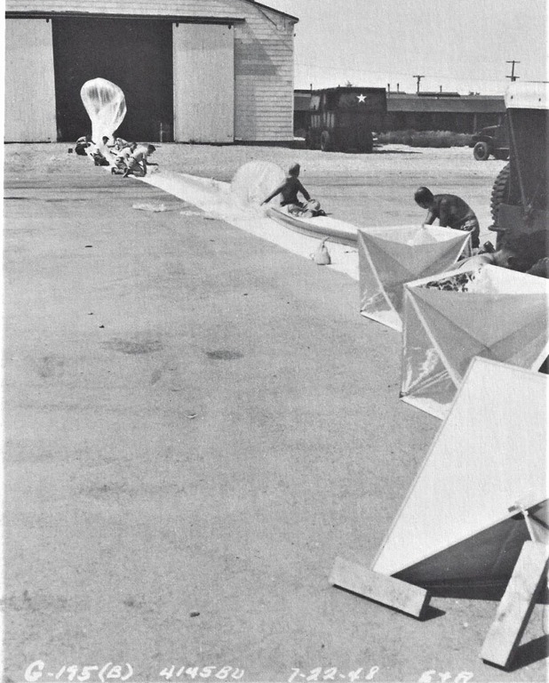 Hay imágenes de una matriz en preparación que muestran los objetivos del radar rawin como parte del ensamblaje, pero esa fotografía fue tomada el 22 de julio de 1948, más de un año después del accidente en Roswell. Otra fotografía, publicada el 10 de julio de 1947, muestra el lanzamiento de los dos globos, con un solo blanco adjunto.
