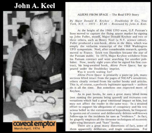 El autor forteano John Keel hizo una crítica salvaje del libro de Keyhoe (y del capítulo 13 de Carpenter) en Caveat Emptor, marzo-abril de 1974.