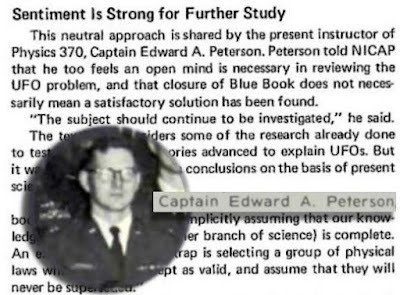 NICAP sospechó un encubrimiento. En el momento del bombardeo de noticias, el instructor de Física 370 de la USAFA, “el Capitán Edward Peterson se ofreció a enviar una hoja de ‘Errata y Addenda’ a NICAP para mostrar cómo la sección ovni había sido actualizada, no reemplazada”. Sin embargo, “después de las noticias generalizadas que exageraron el tratamiento liberal del texto de la controversia ovni, la Academia sustituyó una versión muy abreviada y ‘revisada’ del capítulo del libro de texto de 14 páginas, alegando que la versión anterior estaba ‘desactualizada’… NICAP identificó al Capitán Peterson como el autor del nuevo capítulo y reconoció que “el texto revisado conserva en gran medida la objetividad del capítulo anterior”.