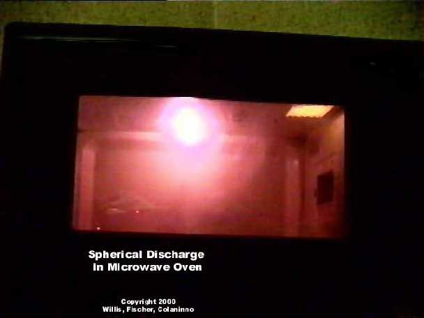 Este es el efecto de “centella” en el horno de 700 vatios en mi dormitorio, captado a través de una cámara de video. La bola es del orden de una pulgada de diámetro y brilla con un color naranja/violeta ardiente. Sobrevivió unos cuatro segundos y se produjo a través del Procedimiento 1 a continuación…