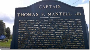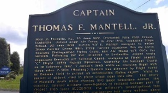 imageEn el lugar del accidente de Mantell, en 2001, se colocó una placa histórica en Franklin, junto a la I-65 -la misma ciudad en la que nació-, junto a preguntas sin respuesta.