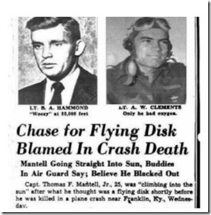 Reporteros de todo el mundo avivaron el fuego de la teoría ovni, concluyendo que Mantell había sido derribado por extraterrestres que se sentían amenazados. El accidente se produjo seis meses después del famoso accidente ovni de Roswell, Nuevo México, que llevó a muchos a creer de nuevo en la existencia de extraterrestres.