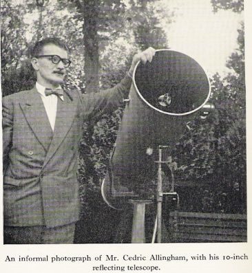 Cedric Allingham, nacido en 1922 en Bombay, hijo único de un rico fabricante textil británico, recibió una educación privada hasta los diez años, cuando su padre se jubiló y compró una casa cerca de Durban. La educación de Allingham continuó en escuelas de Sudáfrica e Inglaterra hasta los diecisiete años, cuando ingresó en un sanatorio con una grave enfermedad que lo mantuvo boca arriba durante casi dos años. En 1941 se unió al ejército (RAOC) y fue destinado a Oriente Medio, donde pasó la mayor parte de la guerra. Fue durante esta época que se interesó por la Astronomía al “identificar las estrellas por falta de algo mejor que hacer en el desierto cuando hacía demasiado calor para dormir por la noche”.
