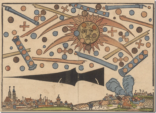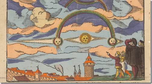 El folleto impreso por Apiano y Cocio se ajusta a un paradigma amplio de innumerables pliegos y xilografías impresos masivamente en toda la Europa de la Edad Moderna . En conjunto, subrayan un ferviente interés por los fenómenos inexplicables o curiosos de la naturaleza. Los temas comunes incluían presagios misteriosos en los cielos, el nacimiento de humanos y animales deformes o deformes, y otros misterios inexplicables que presagiaban la ruina de la humanidad, la derrota militar o el castigo divino. Como puntos de comparación, el folleto creado por Apiarus y Coccius tiene sorprendentes similitudes con una impresión de una sola hoja creada por el impresor alemán Hans Glaser de una manifestación celestial similar sobre Núremberg el 14 de abril de 1561, la pintura al óleo, «Vädersolstavlan» («La pintura del perro solar» en sueco), que representa los extraños eventos que ocurrieron sobre Estocolmo el 25 de abril de 1535, y una xilografía inglesa que informa sobre la caída de un gran meteorito sobre Hatford el 9 de abril de 1628. Todas estas obras contienen un fuerte simbolismo militarista, enmarcando así estas manifestaciones celestiales a través de la lente de la guerra, el conflicto civil o el cambio político.