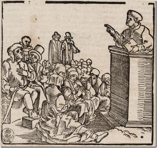 Un clérigo predicando a la congregación. Xilografía de Jörg Breu, alrededor de 1525. © Kupferstich-Kabinett, Staatliche Kunstsammlungen Dresden, Foto: Andreas Diesend