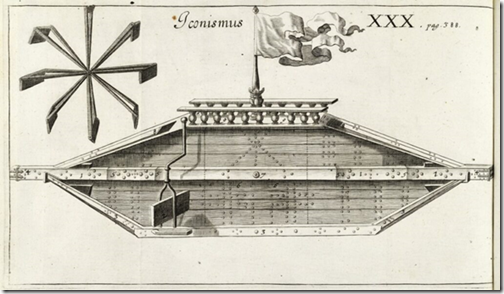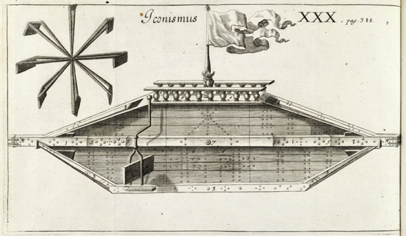 Diseño de un platillo flotante, ilustración de: Gaspar Schott, Technica Curiosa, Nuremberg/Würzburg, 1664, lámina XXX, © Staatliche Museen zu Berlin, Kunstbibliothek