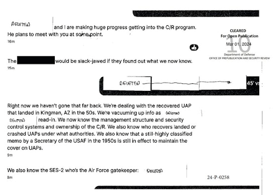 Entonces, ¿por qué sacar todo esto a colación ahora? Bueno, Christopher Mellon, quien se describe como ex Subsecretario Adjunto de Defensa para Inteligencia, publicó un intercambio de correos electrónicos parcialmente censurados. No sabemos quién era el destinatario, salvo un alto funcionario del gobierno, pero dado lo que hemos visto de altos funcionarios gubernamentales en la última década, aproximadamente, no estoy seguro de que sea particularmente impresionante.