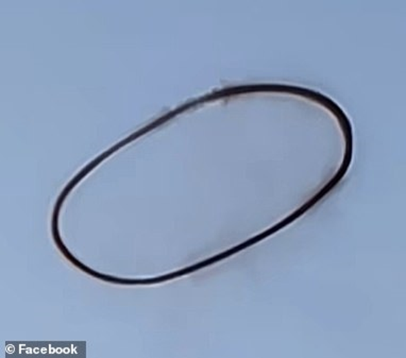 La afirmación de Thompson de que los agentes de la patrulla fronteriza han visto portales abriéndose en el cielo es similar a la del motociclista Frankie Camren de Bonner Springs, Kansas, que conducía por una calle tranquila cuando vio aparecer un extraño anillo negro (en la foto) en el cielo.