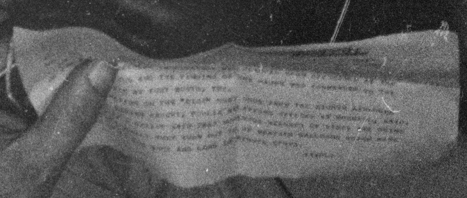 El inquietante memorando se puede ver en una fotografía en blanco y negro enviada por los medios de comunicación en ese momento.
