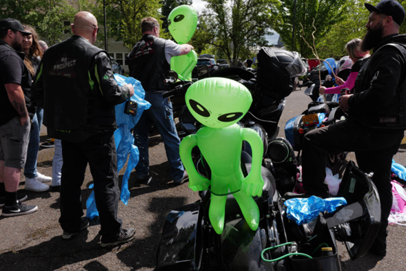Los motociclistas se reúnen para un desfile durante el UFO Fest 2025 en McMinnville, Oregón. Jennifer Osborne para el WSJ