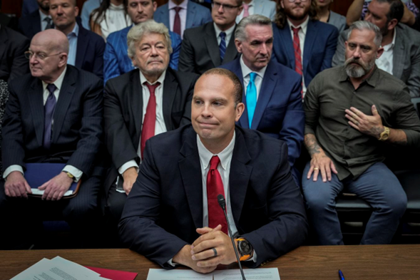 David Grusch, ex funcionario del Pentágono, llega a una audiencia del Comité de Supervisión de la Cámara de Representantes de 2023 titulada ‘Fenómenos anómalos no identificados: implicaciones para la seguridad nacional, la seguridad pública y la transparencia del gobierno’. Drew Angerer/Getty Images