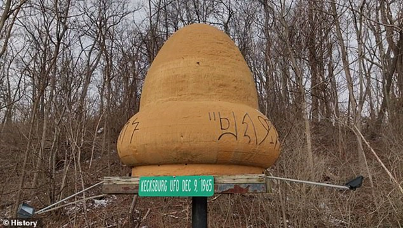 Un modelo con forma de bellota del supuesto ovni ha estado afuera de la estación de bomberos voluntarios de Kecksburg desde 1990, cuando fue creado como accesorio para el programa de la NBC ‘Misterios sin resolver’.