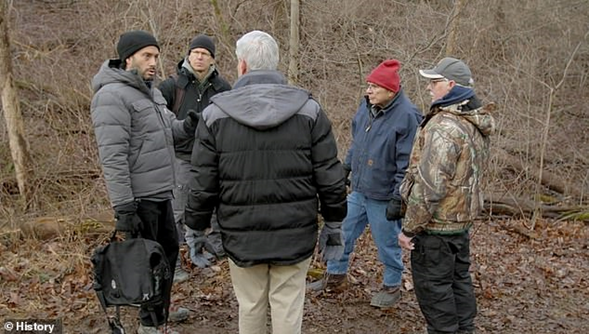 imageEn la imagen: El equipo de History Channel, junto con los testigos directos de ovnis Bill Weaver (segundo desde la derecha) y Ronnie Strubel (derecha), se encuentran en el bosque cerca del supuesto lugar del accidente.
