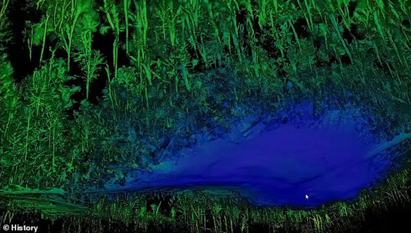 imageEn la imagen: El equipo de History Channel realizó un escaneo LiDAR (Detección y Alcance de Luz) del terreno cerca del lugar donde se cree que se estrelló el ovni. El tecnólogo Pete Kelsey afirmó que esta zona azul era anormalmente plana en comparación con el resto de la topografía circundante.