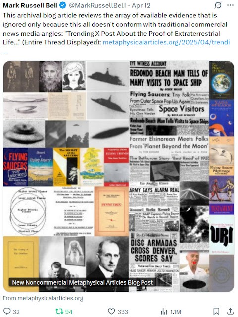 Esta definición de la palabra «prueba» plantea una pregunta en relación con las interacciones o experiencias que involucran los llamados sucesos «paranormales»: ¿Puede alguna evidencia considerarse «prueba convincente» para todos? El artículo de ufología de este bloguero y dos publicaciones populares de X.com que promocionan la información son un ejemplo de este dilema. Las estadísticas actuales de X para las publicaciones se indican a continuación.