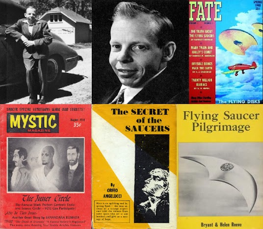Tanto en FATE como en MYSTIC se publicita el cuento de The Secret of the Saucers de Orfeo Angelucci. [artículo de perfil de caso] El libro dice que tiene el secreto de los platillos, que vienen del espacio exterior y las entidades que los guían están en un plano superior al de la gente de la Tierra.