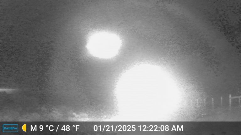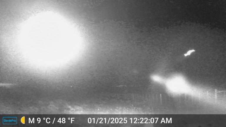 El registro ocurrió la madrugada del 21 de enero de 2024, a las 00:22 horas. En un lapso de apenas dos segundos, la cámara tomó tres fotografías que muestran una serie de luces intensas en un aparente movimiento descendente.