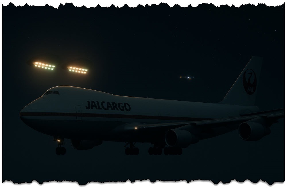 En un momento, los dos objetos se posicionaron abruptamente directamente frente al 747, quizás a solo unos cientos de pies por delante de la nariz. El resplandor era tan intenso que la cabina del 747 «se iluminó» brillantemente, y el capitán Terauchi podía sentir calor en su rostro por el brillo de los objetos [45] [46]. Las luces fueron descritas como un «árbol de Navidad» de colores destellantes blanco, naranja, verde y ámbar[47]. Terauchi luego enfatizó que no eran estrellas o planetas: «eran tan luminosos… parpadeaban, parpadeaban… se movían en una formación cerrada», dijo, enfatizando que estos objetos exhibían movimiento y características diferentes a cualquier luz celestial distante[48]. Durante esta fase, la tripulación tuvo la impresión de que la nave más pequeña podría estar «explorando» o inspeccionando su avión; como lo expresó Terauchi, los dos ovnis parecían estar volando en «formación cerrada» alrededor del 747, casi juguetonamente[48].