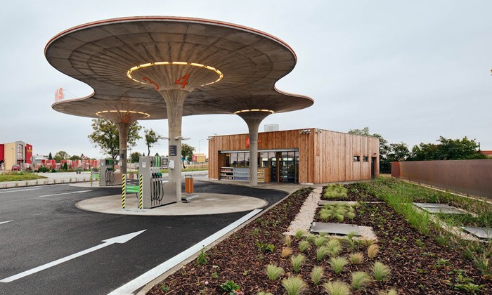 Eslovaquia puede presumir de una elegante gasolinera ovni