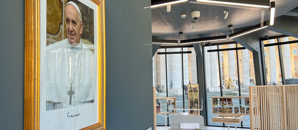Un peregrino alemán amante de los sellos no queda especialmente impresionado por lo que ve en el interior. No sólo es “muy frío, es muy estéril”. También falta información sobre las monedas y sellos emitidos por el Vaticano. Además de esto, varias vitrinas también ofrecen accesorios y recuerdos al estilo de la Guardia Suiza y la Policía Vaticana. La oferta se ampliará aún más en las próximas semanas.