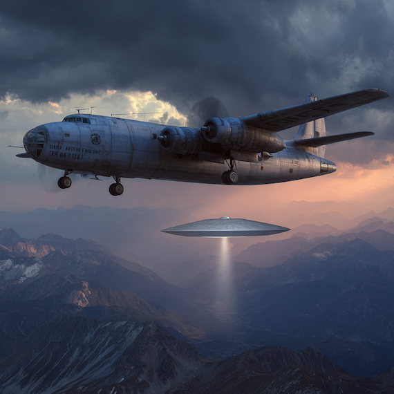C-119 aircraft and a UFO in the sky. --v 7 Job ID: 56775615-fe82-4d35-8ebb-1cc3efa11d13Tanto el piloto como el copiloto estaban seguros de que no se trataba de un meteorito. Otro informe muy curioso descubierto por Randle fue el de los testigos Bob Robinson y Floyd Evans, quienes lo vieron volar a baja altura mientras conducían por una carretera cerca de Eureka, Utah. Los testigos afirmaron que claramente se trataba de una especie de cilindro en llamas con una serie de ventanas laterales, y que su aproximación provocó que su vehículo se detuviera. También afirmaron que redujo la velocidad hasta detenerse y flotar momentáneamente sobre ellos antes de continuar su camino, tras lo cual el motor se encendió de nuevo rápidamente. Otros informes de testigos parecían indicar que el objeto también estaba bajo control inteligente, incluyendo informes de que el objeto giraba, aceleraba o desaceleraba, invertía su curso e incluso aterrizaba, todas cosas que, como es de esperar, los meteoritos no hacen. Otro interesante informe de un testigo ocular descubierto por Randle proviene de los archivos desclasificados del Libro Azul, de un testigo cuyo nombre había sido omitido, y que dice: