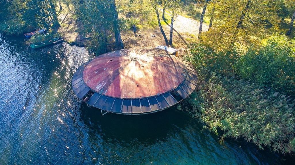 Parece un ovni abandonado en las aguas de Pogoria… Es el icónico café flotante «Arizona», que era una atracción del Parque de Silesia en la República Popular de Polonia. Fotos