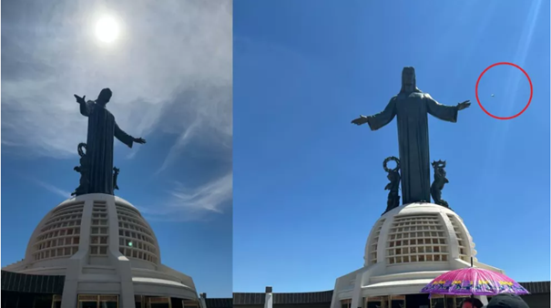 Esta vez, se trató de un hecho registrado en el Cerro del Cubilete en Silao, Guanajuato cuando un visitante tomó una fotografía durante una misa en el santuario de Cristo Rey cuando se percató de un extraño objeto en el cielo cercano a la mano izquierda del monumental.