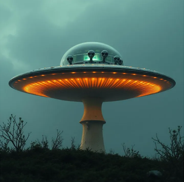 Hongo como ovni. Ideas artísticas con IA de KEN KORCZAK