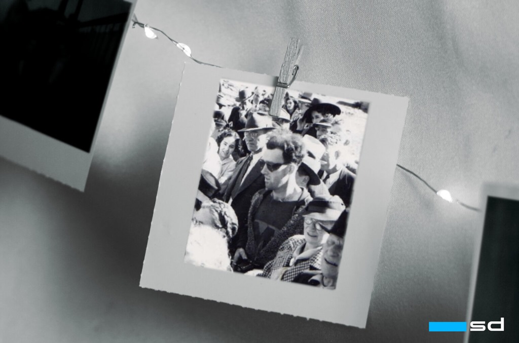 La foto en blanco y negro es de 1941 y muestra a un grupo de personas asistiendo a la reapertura del puente South Forks en Gold Bridge, BC, Canadá, después de que fuera cerrado debido a una inundación en 1940. Sin embargo, a principios de 2010, la foto se convirtió en sensación en línea gracias al singular individuo de centroderecha que de alguna manera parecía sospechosamente fuera de lugar.