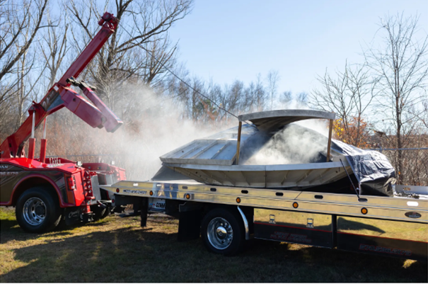 Un platillo volante humeante se ve sobre un camión plataforma en Russell Park en Carbondale durante el Festival Carbondalien el sábado 9 de noviembre de 2024. (Christopher Dolan / Fotógrafo del personal)