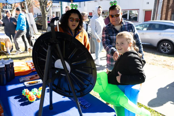 Phoebe Schanck, de 8 años y residente de Lake Ariel, juega con su disfraz de extraterrestre en el Festival Carbondalien de Carbondale el sábado 9 de noviembre de 2024. (Christopher Dolan / Fotógrafo del personal)