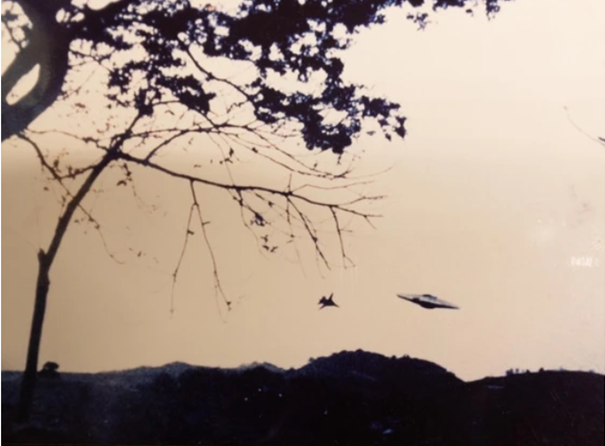 Una de las fotos de una carpeta con imágenes de ovnis recopiladas por el teniente coronel Wendelle Stevens. Foto de Arlen Redekop / PNG