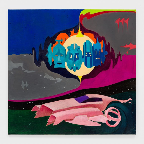 Cuatro cuadras al sur del Centro de Dibujo, una serie de pinturas de Kafchin en PPOW examina de manera similar cómo las preocupaciones por los extraterrestres a veces representan tensiones claramente terrenales. «El título ‘Pinturas hechas para extraterrestres arriba’ es en sí mismo un comentario político y social sobre la jerarquía de nuestro mundo y contexto cultural», afirma.