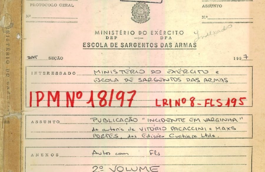 Historial del archivo Investigación Policial Militar (IPM) generada en el Ministerio del Ejército – Escuela de Sargentos de Armas – EsSA, en la ciudad de Três Corações, estado de Minas Gerais, bajo el número 18, en marzo de 1997, y archivada en el Tribunal Superior Militar en agosto de 1997 como Causa Cerrada nº 908/1997, de 29/07/1997, legajo 2728.
