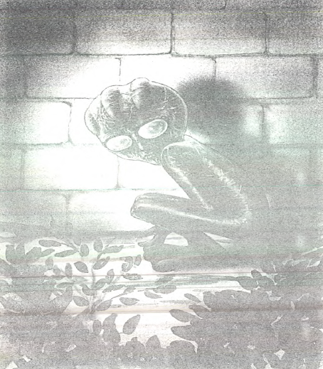 Empapado por la lluvia y refugiado contra la pared, supuestamente fue identificado erróneamente como un ser extraterrestre.