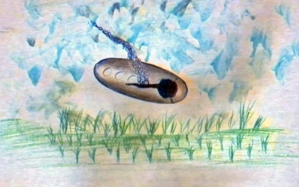 Me lo mostró. Parecía un niño. Estaba cosiendo cosas allí. Le pregunté: «¿Pero qué es esto?». Me respondió: «Es aquí» (señalando una cama). Entonces retrocedí un poco y vi que el extraterrestre estaba allí, relató.