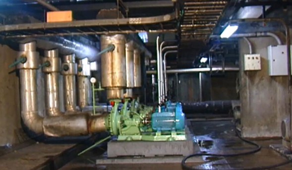 Un reportaje de EPTV reveló que el área en el sótano de la Unicamp, identificada como la ubicación de un laboratorio secreto, contenía una sala de máquinas y tuberías de agua caliente para el hospital universitario — Foto: Reproducción/TV Globo