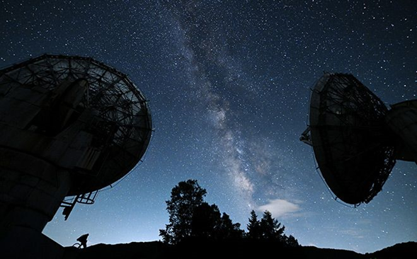 imageLas antenas parabólicas del Radio Observatorio de Nobeyama, en la aldea de Minamimaki, prefectura de Nagano, monitorean las ondas de radio de las estrellas en el cielo nocturno. (Foto de archivo de Asahi Shimbun)