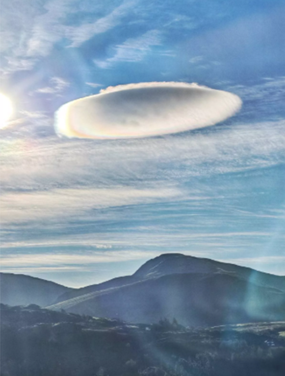 Se han avistado nubes sobrenaturales sobre las montañas del norte de Gales, que brillan misteriosamente bajo el sol poniente. Históricamente, estas raras formaciones se han comparado con platillos voladores e incluso se les ha atribuido varios avistamientos de ovnis.