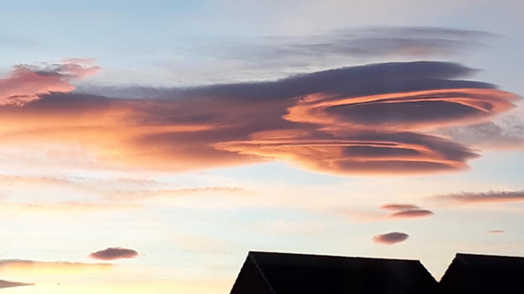 Fuente de la imagen, Observador meteorológico de la BBC / Stella Spark. Se observaron muchos ejemplos de nubes lenticulares en los cielos del noreste de Inglaterra, incluso aquí en Gateshead.