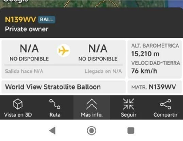 Tras una revisión inicial, todo apunta a que se trata de un globo estratosférico tipo N139WV , utilizado para fines científicos, monitoreo ambiental e incluso tareas de observación.