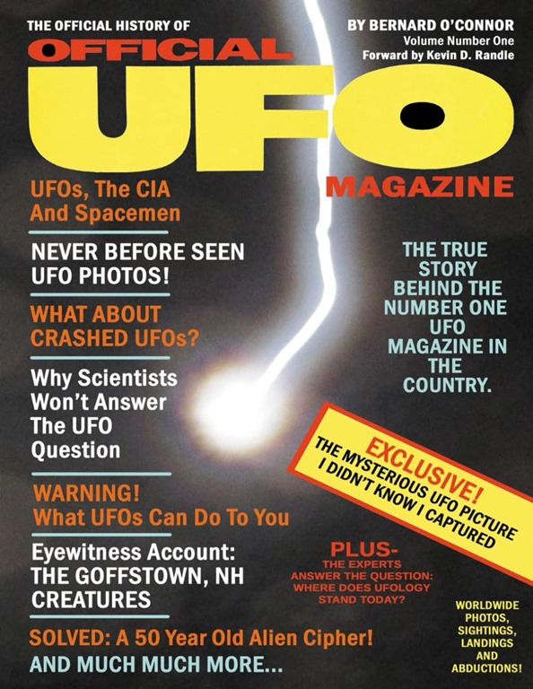 Menciono todo esto ahora porque Bernie O’Connor, editor original de Official UFO, ha publicado un libro, The Official History of Official UFO Magazine, que se basa en los primeros seis números de la revista. No solo se puede leer lo mejor de esas historias, sino que también incluye comentarios e información privilegiada. Está impreso en papel de alta calidad y repleto de fotografías a color, e incluso algunos de los anuncios se publicaron en la revista a mediados de la década de 1970.