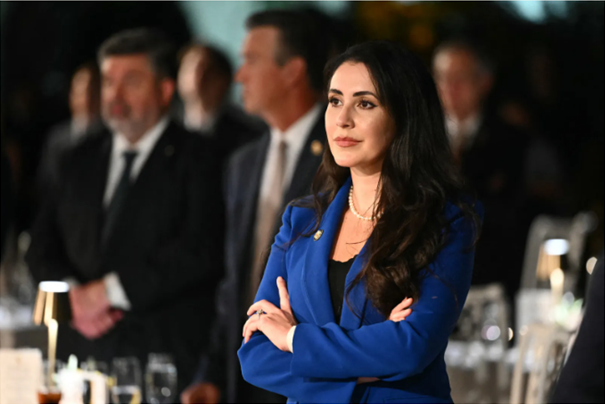 Anna Paulina Luna (republicana por Florida) escucha mientras Donald Trump (fuera de plano) habla durante una cena ofrecida en el recién renovado Jardín de las Rosas de la Casa Blanca | Mandel Ngan/AFP vía Getty