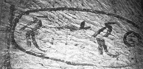 Vea la imagen superior (ya no está disponible). La leyenda «Jeroglíficos» aparece sobre las cámaras que se encuentran sobre la «Cámara del Rey», que estaban cerradas e inaccesibles; no se descubrieron hasta el siglo XIX, cuando se dinamitaron los pasadizos . En estas cámaras, como indica la leyenda, hay jeroglíficos con el nombre del faraón «Keops» dispuestos entre los bloques de piedra; es decir, dichos jeroglíficos solo pudieron haber sido inscritos en los bloques durante la construcción de la pirámide. Vea la imagen de uno de ellos: